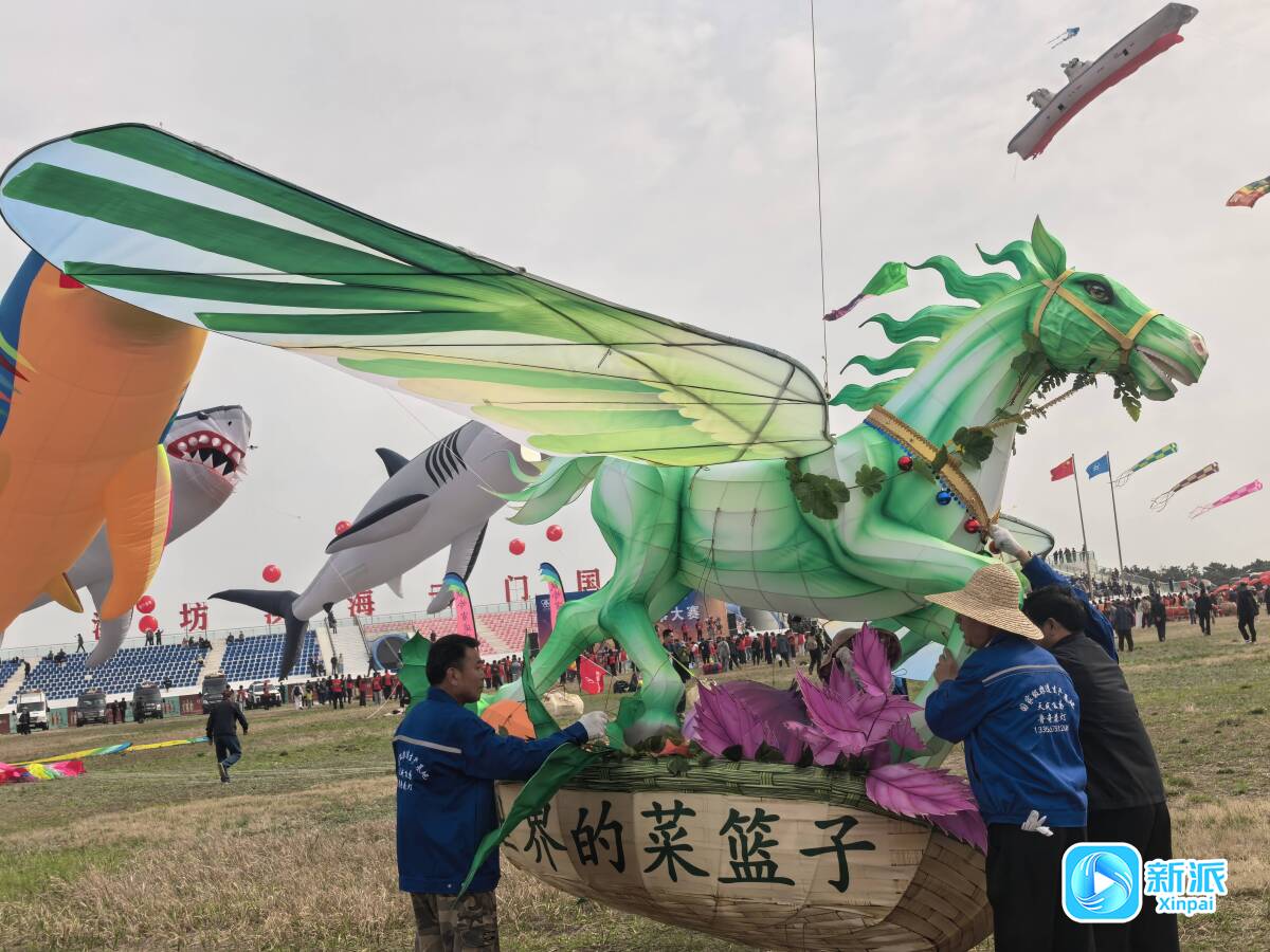 這只風(fēng)箏從籌備到制作完成歷時三個月。整體造型靈動舒展,“飛馬”直徑約5米,在風(fēng)力加持下盡顯穩(wěn)健大氣?!安嘶@子”里裝滿“大姜”“洋蔥”等,形象逼真,色彩艷麗,勾勒出一幅流動的現(xiàn)代農(nóng)業(yè)長卷。
