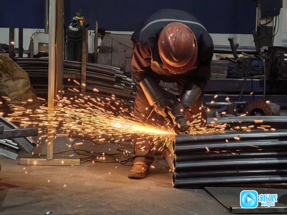 山東宏力異型鋼管有限公司生產車間里焊花飛濺。