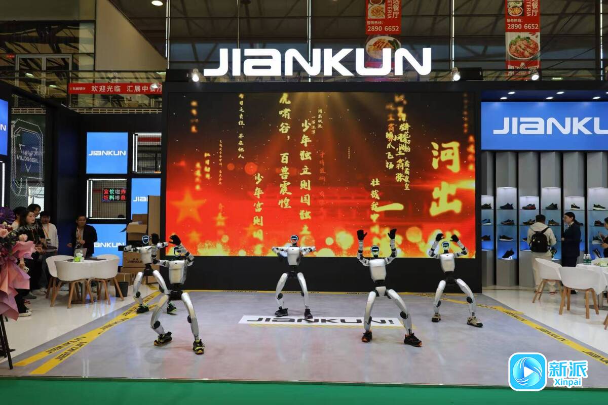 展會現(xiàn)場,機(jī)器人穿山東健坤防護(hù)用品有限公司勞保鞋跳舞展示風(fēng)采。