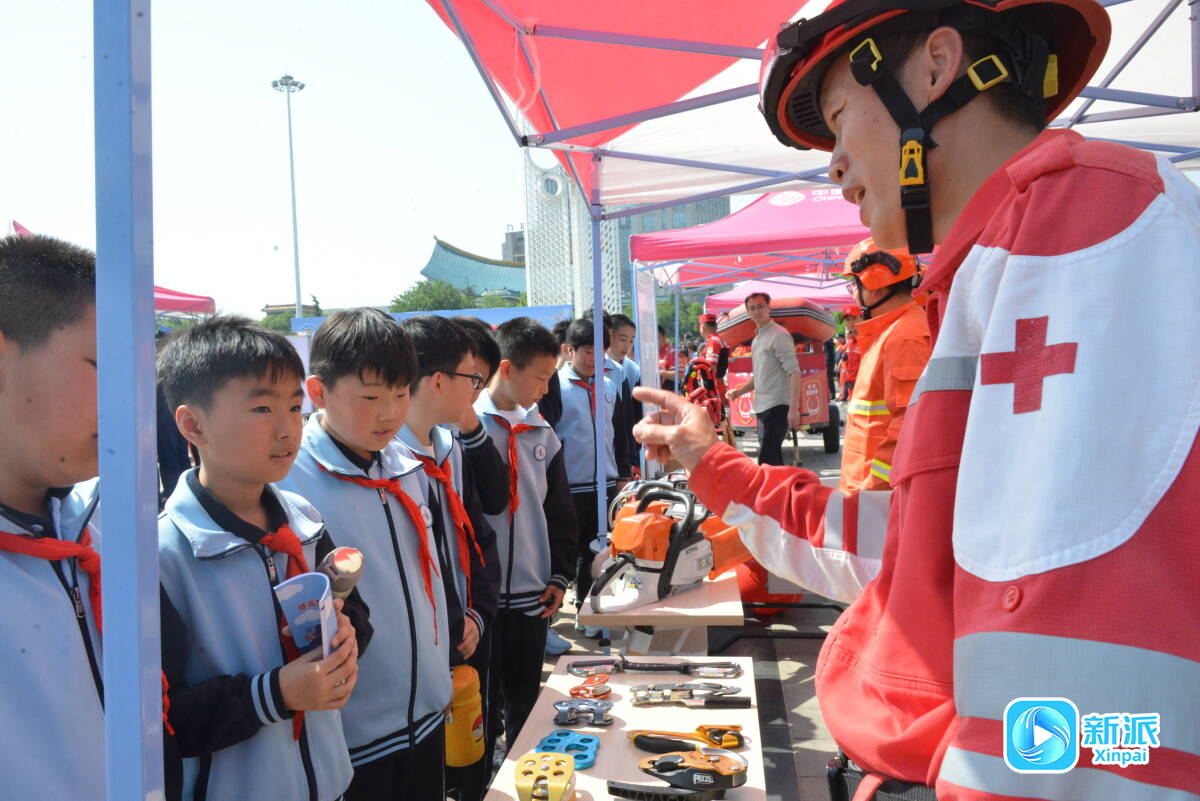 志愿者向青少年普及應急科普知識。