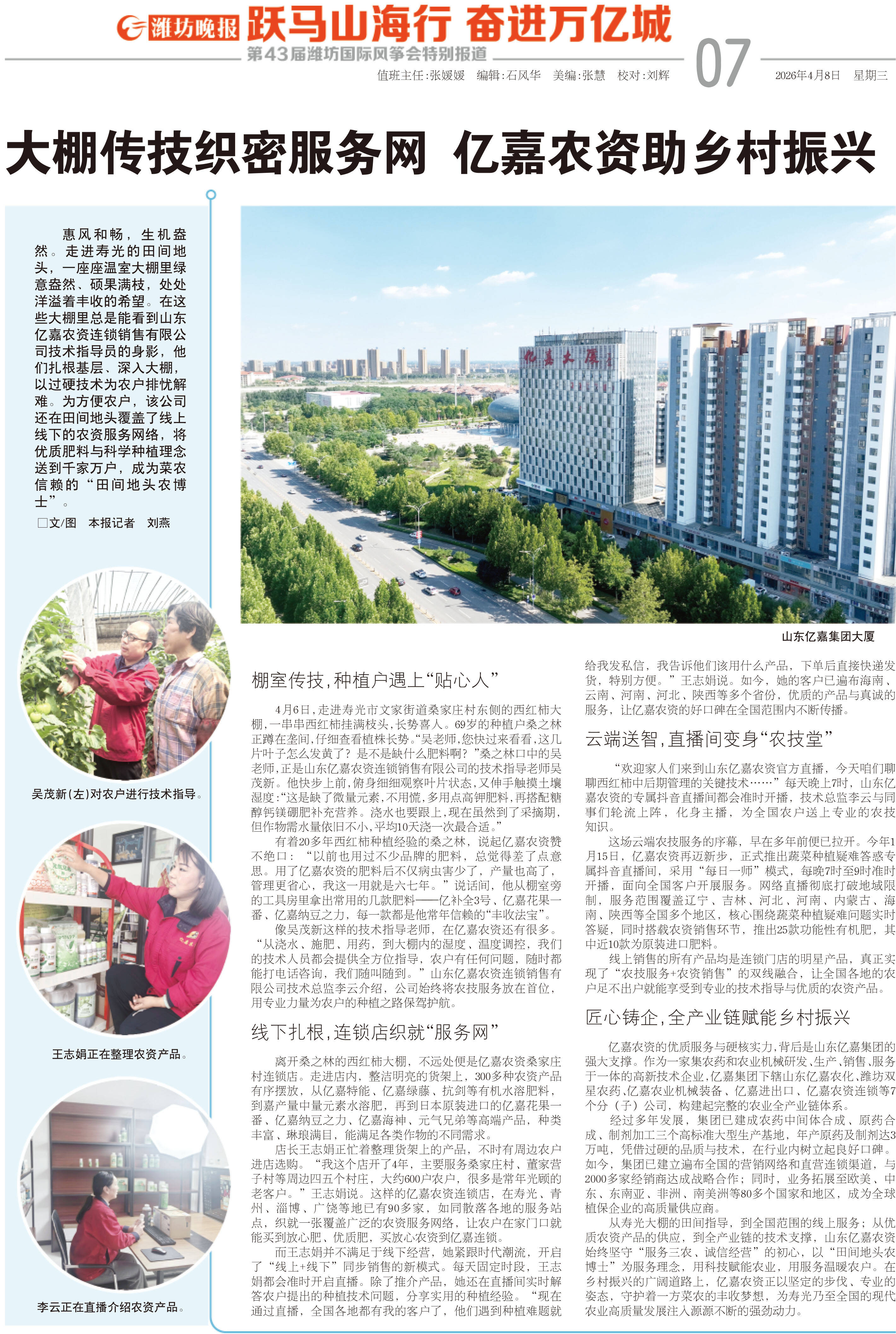 從壽光大棚的田間指導(dǎo),到全國(guó)范圍的線上服務(wù);從優(yōu)質(zhì)農(nóng)資產(chǎn)品的供應(yīng),到全產(chǎn)業(yè)鏈的技術(shù)支撐,山東億嘉農(nóng)資始終堅(jiān)守“服務(wù)三農(nóng)、誠(chéng)信經(jīng)營(yíng)”的初心,以“田間地頭農(nóng)博士”為服務(wù)理念,用科技賦能農(nóng)業(yè),用服務(wù)溫暖農(nóng)戶。在鄉(xiāng)村振興的廣闊道路上,億嘉農(nóng)資正以堅(jiān)定的步伐、專(zhuān)業(yè)的姿態(tài),守護(hù)著一方菜農(nóng)的豐收夢(mèng)想,為壽光乃至全國(guó)的現(xiàn)代農(nóng)業(yè)高質(zhì)量發(fā)展注入源源不斷的強(qiáng)勁動(dòng)力。