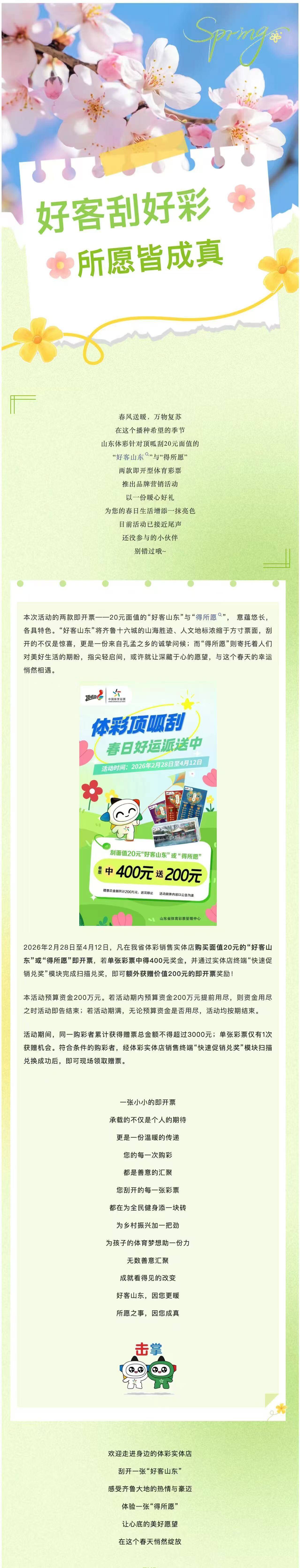 春意盎然,刮出好運:中400送200!“好客山東”“得所愿”活動即將結(jié)束,別錯過哦~