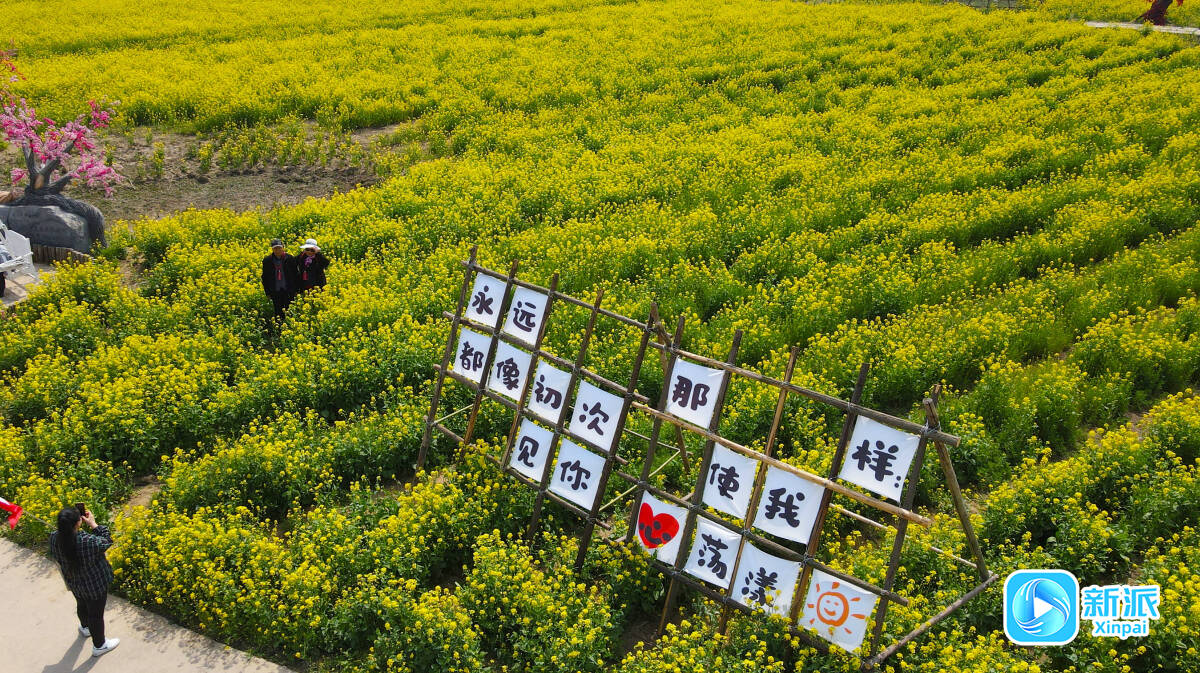 在高密市東北鄉(xiāng)社區(qū)紅高粱影視城內,百畝油菜花海迎來盛放期。