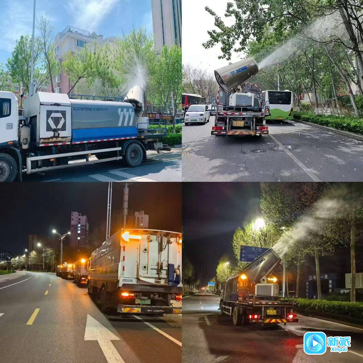 本次飛絮治理行動采用“霧炮打落+機(jī)掃清運”的機(jī)械化閉環(huán)作業(yè)模式,作業(yè)從凌晨啟動,利用清晨車流人流較少時段高效推進(jìn),持續(xù)至正午12時左右,共出動霧炮車、沖洗車、灑水車、機(jī)掃車等各類環(huán)衛(wèi)作業(yè)車輛40余輛。作業(yè)中,首先由霧炮車通過高壓水霧將空中、枝頭的楊絮打落;隨后沖洗車、灑水車將路面飛絮沖刷歸集至道路兩側(cè);最后由機(jī)掃車進(jìn)行徹底清掃清運,確保路面無殘留、避免二次飄飛,作業(yè)全過程實現(xiàn)“打、沖、掃”無縫銜接。