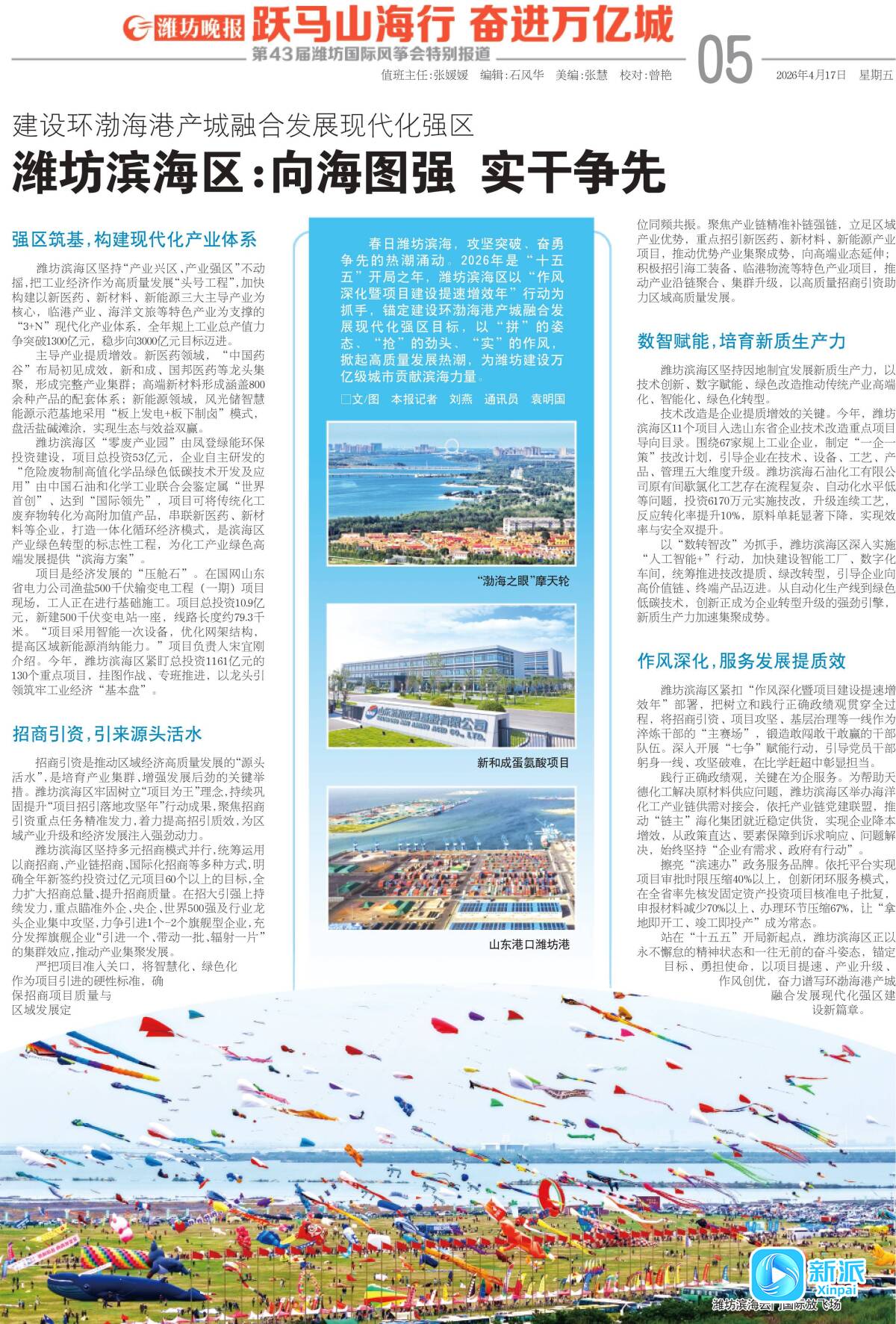 站在“十五五”開(kāi)局新起點(diǎn),濰坊濱海區(qū)正以永不懈怠的精神狀態(tài)和一往無(wú)前的奮斗姿態(tài),錨定目標(biāo)、勇?lián)姑?,以?xiàng)目提速、產(chǎn)業(yè)升級(jí)、作風(fēng)創(chuàng)優(yōu),奮力譜寫(xiě)環(huán)渤海港產(chǎn)城融合發(fā)展現(xiàn)代化強(qiáng)區(qū)建設(shè)新篇章。